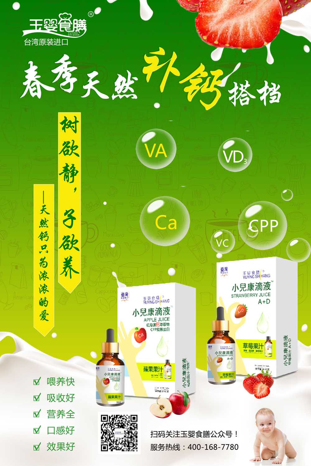臺(tái)灣浤騰生物科技有限公司經(jīng)過(guò)多年的市場(chǎng)調(diào)研和潛心研究,根據(jù)中國(guó)大陸消費(fèi)的營(yíng)養(yǎng)和喂養(yǎng)需求,以中華民族博大精深的醫(yī)學(xué)為基礎(chǔ),運(yùn)用跨學(xué)科、高新技術(shù),為大陸市場(chǎng)提供高品質(zhì)的“玉嬰食膳”品牌營(yíng)養(yǎng)系列產(chǎn)品,以及系統(tǒng)高效的營(yíng)養(yǎng)知識(shí)培訓(xùn)服務(wù)體系。產(chǎn)品覆蓋免疫系統(tǒng)、腸胃消化系統(tǒng)、維生素礦物質(zhì)補(bǔ)充等系列純植物原生態(tài)滴劑產(chǎn)品。為消費(fèi)者提供高品質(zhì)、吸收快、營(yíng)養(yǎng)全面的營(yíng)養(yǎng)食品,提供高效、科學(xué)、健康的新時(shí)代喂養(yǎng)新生活。