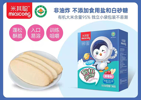 米其聰有機(jī)米餅,非油炸,不添加食用鹽和白砂糖,有機(jī)大米含量95%,獨(dú)立小袋包裝不易潮。蓬松酥脆,入口易溶,訓(xùn)練咀嚼。