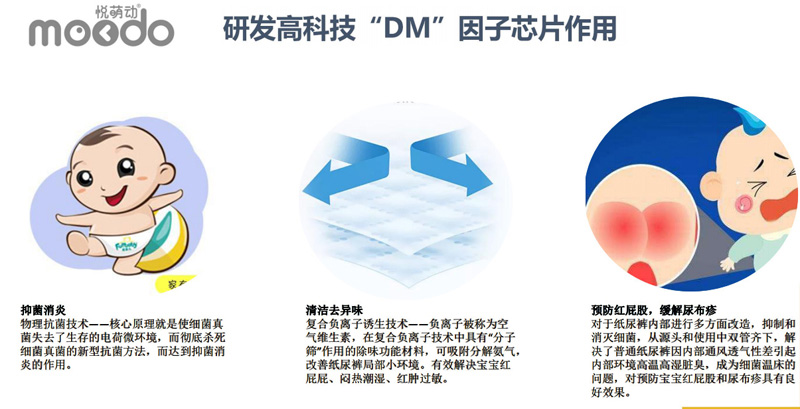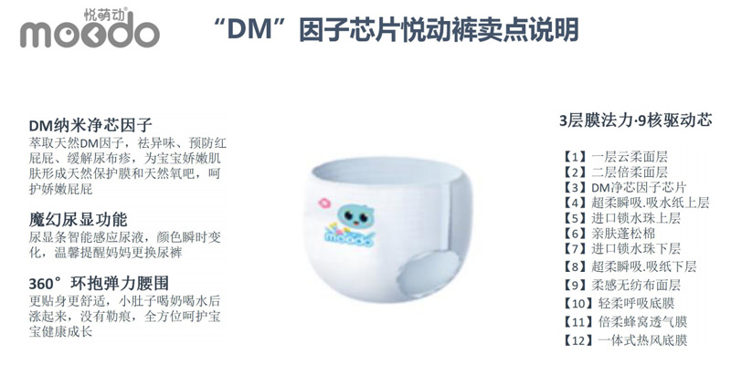 品牌名稱:悅萌動(dòng) 主營產(chǎn)品:悅萌動(dòng)紙尿褲,悅萌動(dòng)悅動(dòng)褲 品牌特色:輕薄防漏,羽柔舒適,DM因子芯體