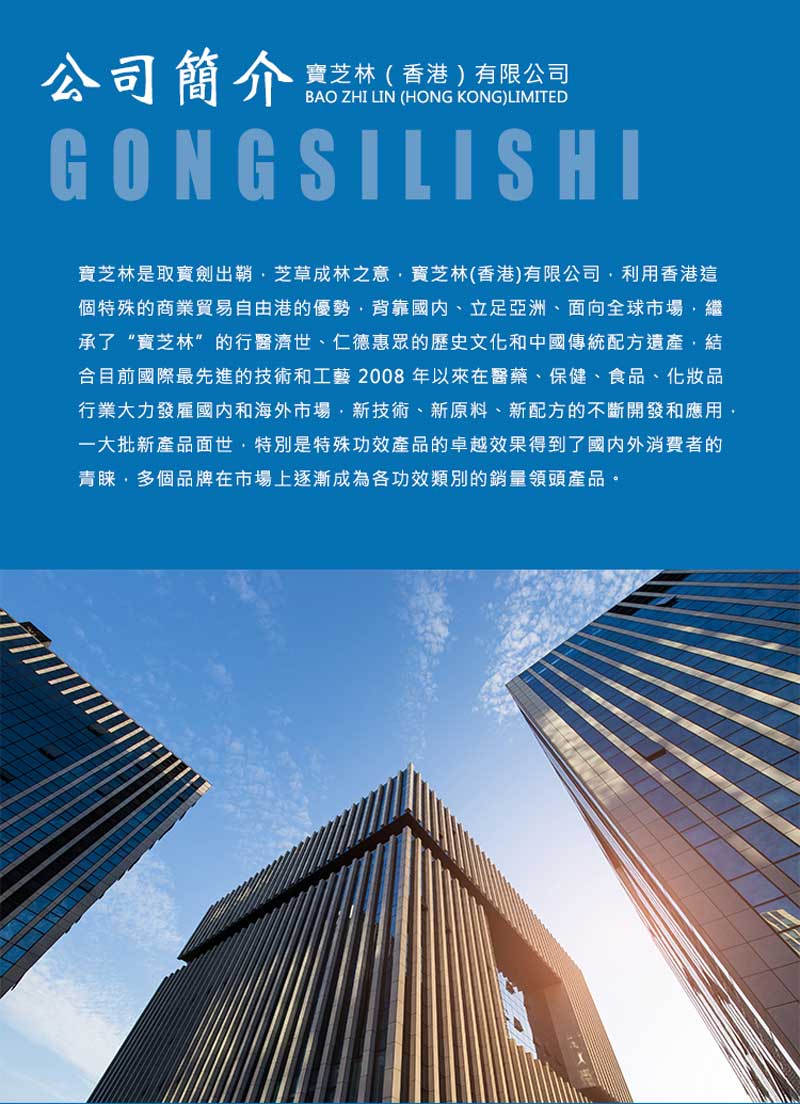 寶芝林是取寶劍出鞘.芝草成林之意。寶芝林(香港)有限公司,利用香港特殊貿(mào)易自由港的優(yōu)勢(shì),背靠國(guó)內(nèi)、立足亞洲、面向全球市場(chǎng),繼成了“寶芝林”的行醫(yī)濟(jì)世、仁德惠眾的歷史文化和中國(guó)的傳統(tǒng)配方遺產(chǎn),結(jié)合目前國(guó)際最先進(jìn)的技術(shù)和工藝,2008年以來(lái)在醫(yī)藥、保健、食品、化妝品行業(yè)大力發(fā)展國(guó)內(nèi)和海外市場(chǎng),新技術(shù)、新原料、新配方的開(kāi)發(fā)和應(yīng)用,一大批新產(chǎn)品面世,特別是特殊功效產(chǎn)品卓越效果,得到了國(guó)內(nèi)外消費(fèi)者的青睞,多個(gè)品牌在市場(chǎng)上逐漸成為各功效類(lèi)別的銷(xiāo)量領(lǐng)頭產(chǎn)品。