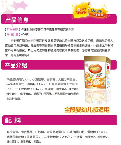 卡咪呢金胚麥芽全營養(yǎng)高蛋白有機營養(yǎng)米粉