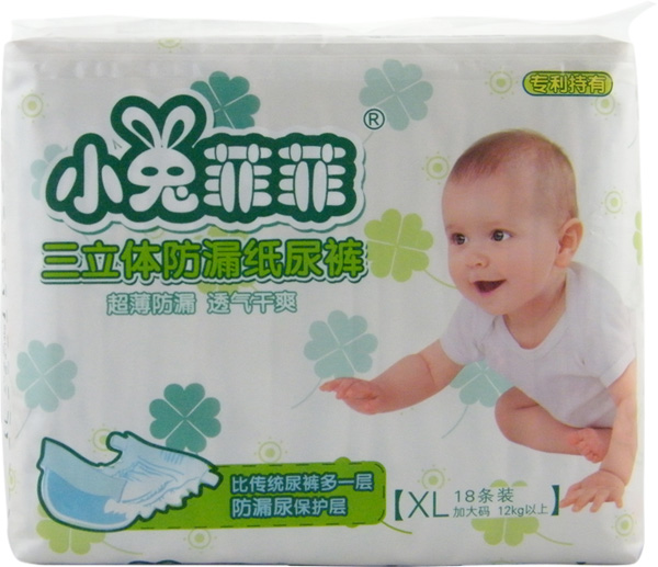 小兔菲菲嬰兒紙尿片是廣州咕嚕咕嚕嬰幼兒用品有限公司主打品牌產(chǎn)品。產(chǎn)品具有超薄、超透氣、超能吸、超舒爽的特性,可瞬間吸收寶寶排出的尿液,讓寶寶遠離紅屁屁。