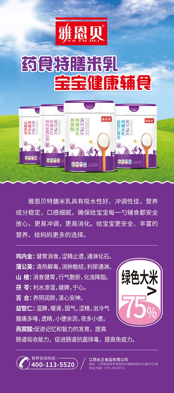寶寶輔食吃什么?且看它——“雅恩貝藥食特膳米乳”,一款深得萬千寶媽認可的高品質(zhì)營養(yǎng)輔食,上市以來圈粉無數(shù),各大門店火爆熱賣中,成長有它更健康哦!