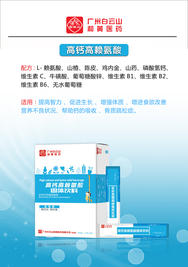 配方:L-賴氨酸、山楂、陳皮、雞內(nèi)金、山藥、磷酸氫鈣、維生素C、;撬帷⑵咸烟撬徜\、維生素B1、維生素B2、維生素B6、無水葡萄糖