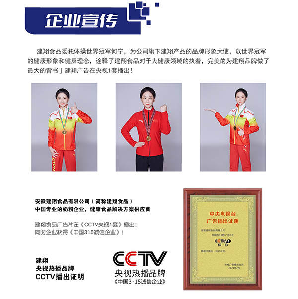 作為2020年安徽省重點(diǎn)招商引資的乳制品專業(yè)企業(yè),建翔食品自2003年成立以來,深耕健康食品領(lǐng)域,是安徽省唯一一家調(diào)制乳粉工廠,更是國內(nèi)專業(yè)的健康食品解決方案供應(yīng)商,集研發(fā)、生產(chǎn)、銷售于一體,專注為客戶提供奶粉OEM/ODM全鏈條服務(wù)。