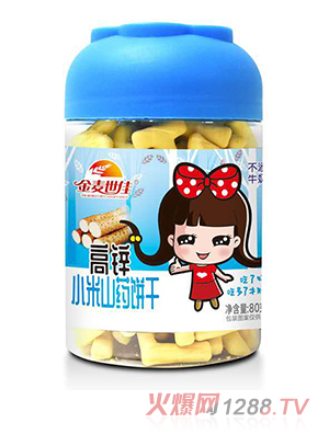 金麥?zhǔn)兰研∶罪灨上盗泄菜目顔纹罚謩e是益生元小米南瓜、高鋅小米山藥、高鈣小米紅棗、多維小米草莓,精選優(yōu)質(zhì)小米、山藥、紅棗、南瓜等優(yōu)質(zhì)五谷和果蔬食材為原料,精心烘焙而成,酥香可口。不添加牛奶、雞蛋、小麥,不添加香精、色素、防腐劑,讓孩子吃的每一口都健康安全。