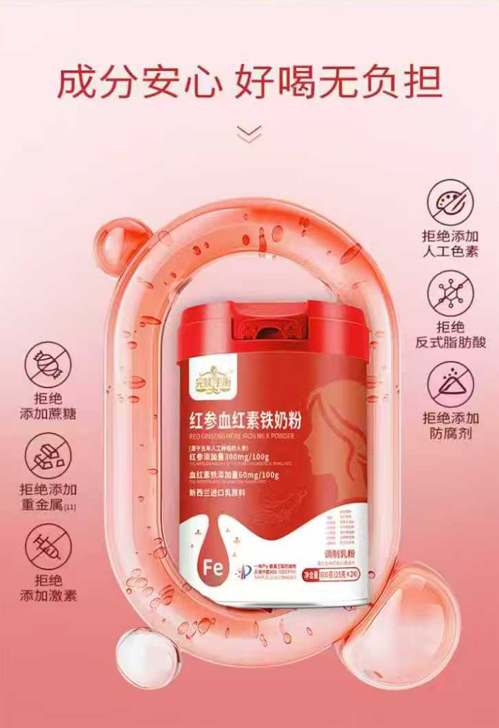 完媄平衡紅參血紅素鐵奶粉,精選新西蘭進(jìn)口乳原料,每100g中紅參添加量300mg、血紅素鐵添加量60mg,同時(shí)添加了菊粉、紅參、大棗、山藥、枸杞、桂圓、蛹蟲草等藥食同源成分,搭配專利益生菌、血紅素鐵、膠原蛋白肽、針葉櫻桃粉、茶葉茶氨酸、透明質(zhì)酸鈉、雨生紅球藻,富含鈣鐵鋅硒及多種維生素,中西結(jié)合,溫和潤養(yǎng),賦能好氣色。拒絕添加蔗糖、香精、色素、防腐劑,成分安心,好喝無負(fù)擔(dān)。獨(dú)立小袋裝,營養(yǎng)更便攜。每天一杯,氣血充沛,吸收無憂。