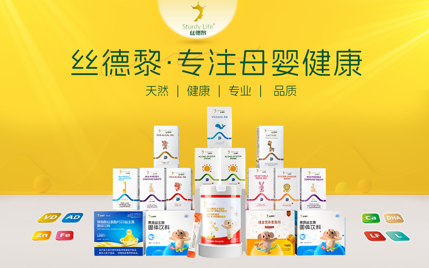 核心產(chǎn)品:DHA藻油、鈣/鐵/鋅系列、乳糖酶、乳鐵蛋白等全場景營養(yǎng)補充