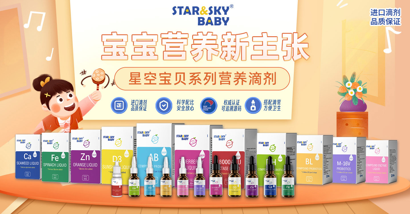 STAR&SKY BABY(星空寶貝)專為寶寶研發(fā),營養(yǎng)守護、成長不講究。擁有新西蘭、美國技術(shù)領(lǐng)先的保健品及營養(yǎng)食品生產(chǎn)企業(yè)供應鏈。其中新西蘭生產(chǎn)企業(yè)是首批在華注冊編號的境外企業(yè)。工廠位于新西蘭最大的城市奧克蘭,擁有數(shù)字化綜合性大型工廠和獨立的科研團隊,擁有營養(yǎng)保健品、配方乳粉兩大廠區(qū),共約3.6萬平方米。工廠目前已通過PMP、HACCP、NZDMADE、NFS、ISO2000等認證。液體鈣、鐵、鋅、D3、鈣鎂鋅、接骨木莓、戊糖片球菌、羅伊氏乳桿菌、鼠李糖乳桿菌(HN001)、乳糖酶、M-16v益生菌、BL復合益生菌、復配酶制劑(消化酶)等滴劑一經(jīng)推出,即滴即食、不卡喉,食用方便。專注寶寶健康成長,深受寶媽和寶寶的喜愛。