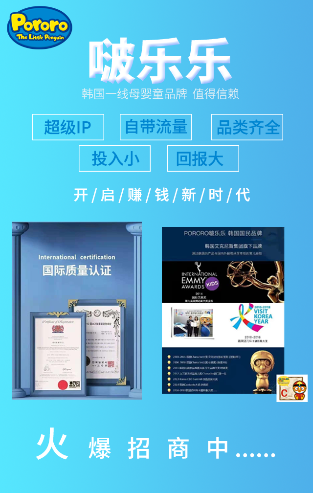 中國杭州浩康文化傳播有限公司,是韓國啵樂樂Pororo品牌在中國大陸地區(qū)唯一指定的全品類運(yùn)營商。