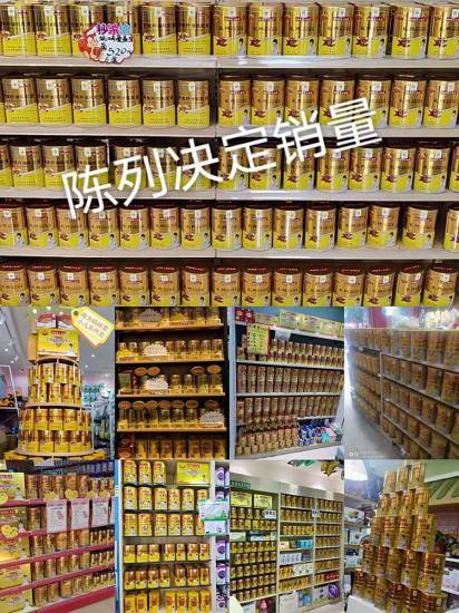 媽咪愛小兒樂產(chǎn)品不僅遍布各大母嬰門店,且陳列展示也相當(dāng)有特色,多排、多架陳列不在話下,各個形狀的堆頭皆為“媽咪愛小兒樂”,占據(jù)門店醒目位置,加上產(chǎn)品外包裝的活力“金色”,顯得特別有吸引力。當(dāng)然,吸粉過后自然帶動的是流量和銷量,動銷輕松,店店都主推