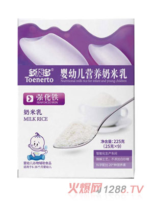 多能多奶米乳有香蕉味、強(qiáng)化鐵、鈣鐵鋅、草莓味、原味、核桃味、果樂多、多維多礦等多種配方,沖調(diào)溶解快,口感細(xì)滑,挑逗bao--bao味蕾;多能多營養(yǎng)奶米乳是通過酶解工藝后的米粉,把食物中的大分子蛋白酶解為bao--bao可以吸收的小分子蛋白,吸水性好,所以溶解速度快。