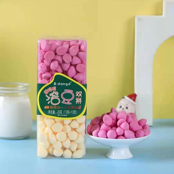 香噹噹溶豆雙拼-香橙味+火龍果味26克產(chǎn)品一上市,就受到了全國經(jīng)銷商的追捧與全國消費(fèi)者的青睞,市場反響良好,歡迎各合作商攜手共同發(fā)展。有意向代理,歡迎留言咨詢。