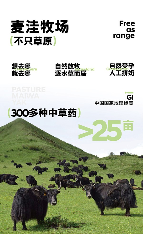 奶源來自麥洼牧場,獲得中國、歐盟、美國三重有機認證及國家地理標志保護。高原牦牛奶自由覓食200余種高原青草,自然放牧,逐水草而居,吃得好,營養(yǎng)更高。