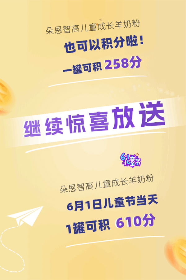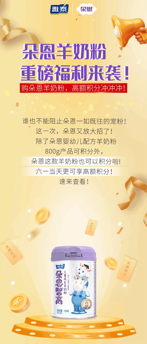 重磅!朵恩這款羊奶粉可以積分啦!六一當(dāng)天更可享610的高額積分!