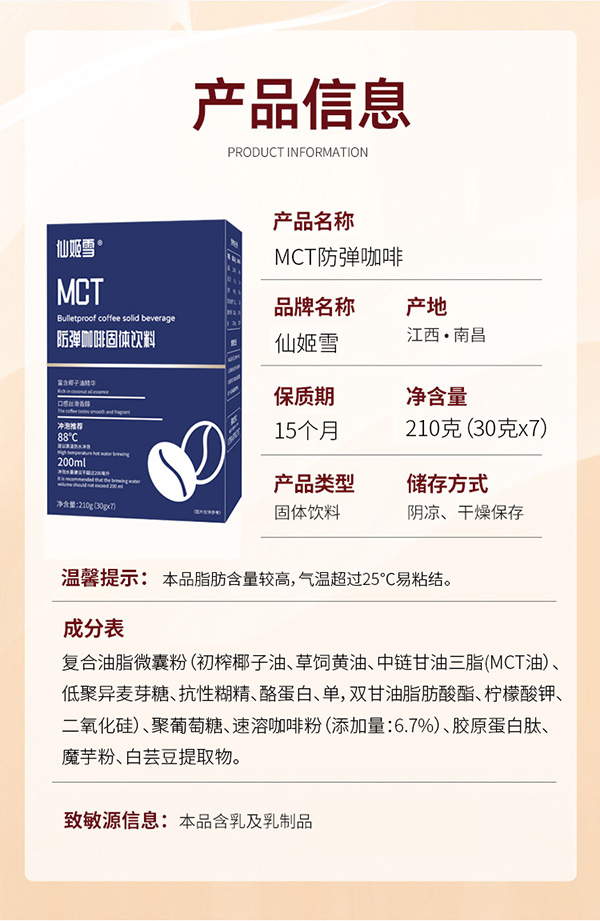 仙姬雪防彈咖啡固體飲料