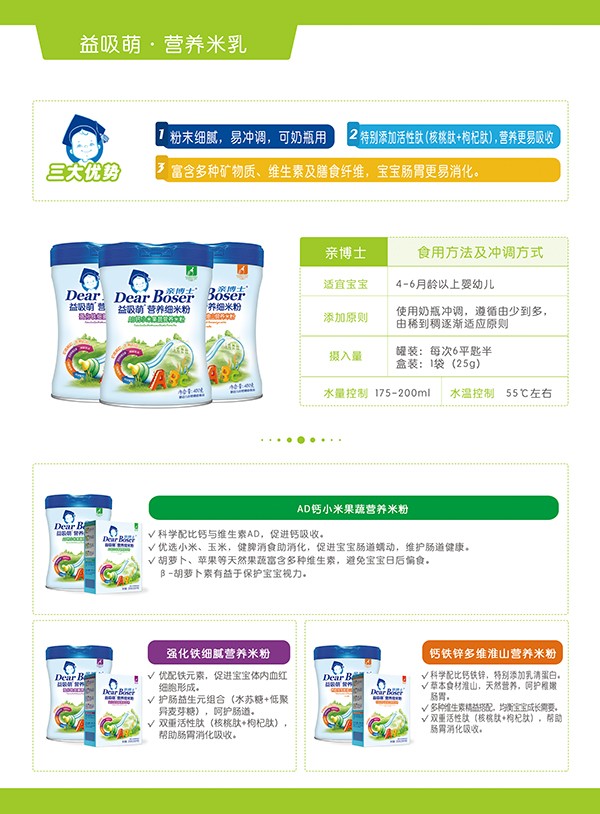 輔食添加,更多媽媽選擇親博士,尤其是這款親博士益吸萌鈣鐵鋅多維淮山營(yíng)養(yǎng)米粉高品質(zhì)輔食,甄選食材,科學(xué)配比,滿足成長(zhǎng)階段的營(yíng)養(yǎng)需求,健康美味,給孩子帶來(lái)不一樣的口糧體驗(yàn)。受到廣大經(jīng)銷(xiāo)商以及門(mén)店老板們的認(rèn)可。