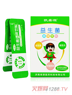 凱鑫源益生菌固體飲料是根據(jù)人體消化不良、腹瀉、過(guò)敏等的發(fā)生機(jī)理,精選乳雙岐桿菌、羅伊氏乳桿菌、嗜酸乳桿菌等菌種,經(jīng)科學(xué)優(yōu)化用量配比,添加天然益生元水蘇糖、藥食兩用山藥粉、茯苓粉等精制而成的一款益生菌固體飲料。產(chǎn)品特點(diǎn):1、高菌量,出廠時(shí)每袋添加200億CFU。2、添加多種益生元,水蘇糖、山藥濃縮粉、茯苓濃縮粉促進(jìn)菌株定植增殖,呵護(hù)脾胃。