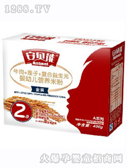 安貝能較大配方奶米粉新配方、新國際、新工藝,配方準(zhǔn)確,均衡營養(yǎng),好原料造好產(chǎn)品,充氮包裝,適合12-24個(gè)月的bao--bao,主要原料為大米蛋白、乳清白、乳清蛋白含量是乳基較大配方奶粉的80%,能量值相當(dāng)于乳基較大配方奶粉的80%。