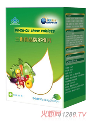 三也真品鐵鋅鈣咀嚼片是以檸檬酸鈣、葡萄糖酸亞鐵、葡萄糖酸鋅、甘露醇、乳糖、聚維酮K30、檸檬黃、硬脂酸鎂為主要原料制成的保健食品,具有補充鐵、鋅、鈣的保健功能。