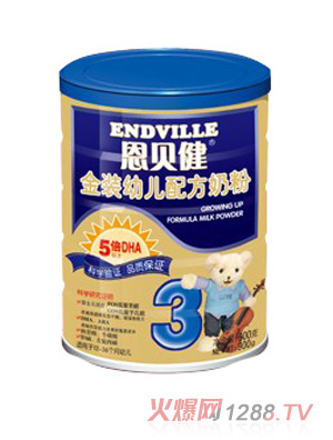 恩貝健金裝兒童成長奶粉由恩貝健營養(yǎng)品研究中心根據(jù)中國兒童生長發(fā)育需求,最新研制的為3~7歲兒童食用的兒童成長奶粉。產(chǎn)品參照世界衛(wèi)生組織(WHO)、國際標準化組織(ISO)、國際乳品聯(lián)合會(IDF)和中國國家相關(guān)的標準要求設(shè)計,特別添加了FOS低聚果糖(益生元)和二十二碳六烯酸DHA、花生四烯酸ARA;同時添加了膽堿、;撬帷⑩}、鐵、鋅等多種營養(yǎng)物質(zhì),對處于旺盛生長發(fā)育期的兒童提供全面、合理、均衡的營養(yǎng)呵護。