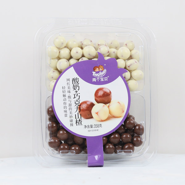 兩個(gè)寶貝山楂制品以山楂為主要原料,添加白砂糖、生活飲用水等為輔料和食品添加劑胭脂紅等,經(jīng)原料挑選、清洗、蒸煮、配料、打漿、攪拌、刮片、烘烤、揭片、切片(條或粉碎、揉球)、烘烤、包裝等工藝制成的。