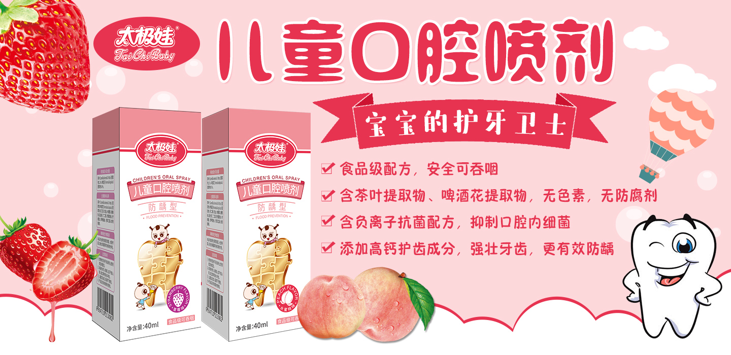 寶寶齲齒,媽媽煩惱,怎么辦?太極娃兒童口腔噴劑,食品級配方,安全可吞咽,含茶葉提取物、啤酒花提取物,無色素、無防腐劑,含負離子抗菌配方,添加高鈣護齒成分,強壯牙齒,更有效防齲