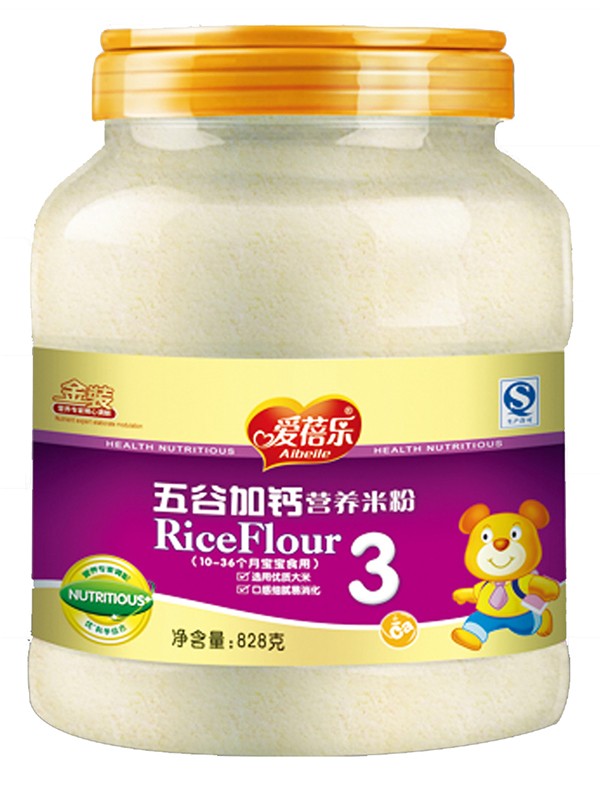 愛(ài)蓓樂(lè)金裝828克五谷加鈣營(yíng)養(yǎng)米粉產(chǎn)品展示