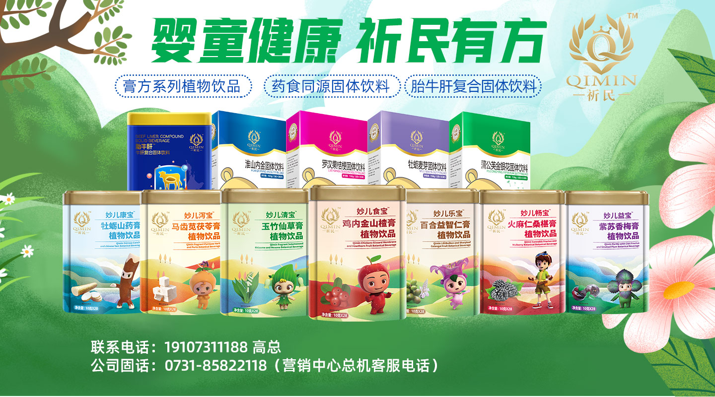 祈民,是湖南妙元生物科技有限公司旗下品牌,秉承“嬰童健康,祈民有方”的品牌理念,與湖南省中醫(yī)藥研究院、香港衍生集團達成戰(zhàn)略合作,將藥食同源,健康之源理念,灌注于每個產(chǎn)品的研發(fā),潛心研制符合現(xiàn)代嬰童健康需求的大健康產(chǎn)品。所有產(chǎn)品均萃取天然草本原料,生產(chǎn)過程中絕無添加。目前旗下有膏方系列植物飲品、藥食同源固體飲料以及胎牛肝復合固體飲料。