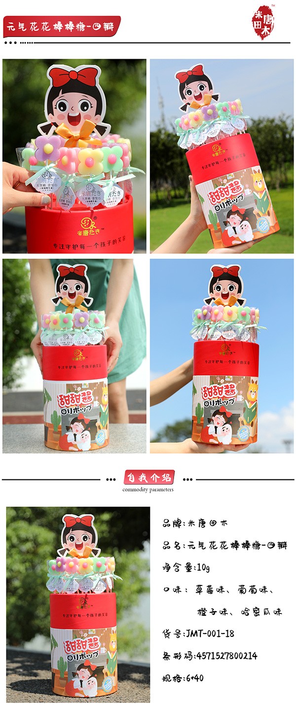 米唐たき棒棒糖系列采用德國進(jìn)口異麥芽酮糖醇為主料,天然口感、無余味 ,溫和的甜度,甜度相當(dāng)于蔗糖的45-60%。天然,無色素,自然色澤,是絕佳的健康食品,可放心食用。來自天然的果肉無異味,只有來自大自然香甜可口的然濃濃果味。