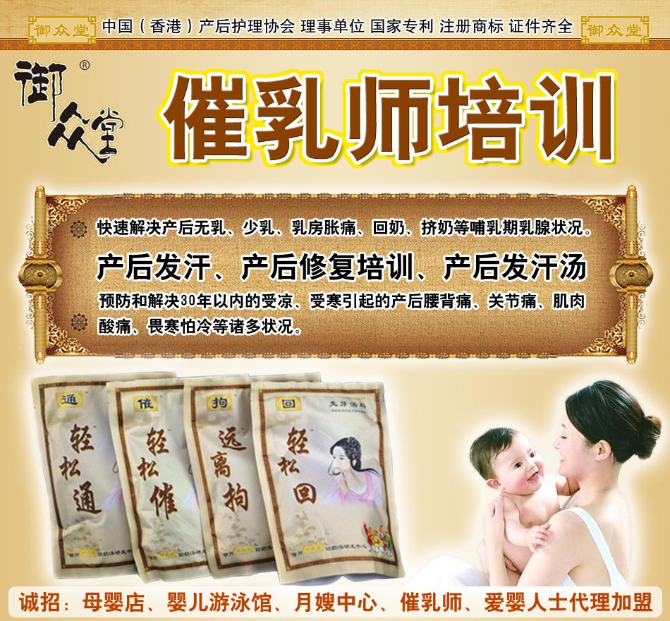 祖?zhèn)髅胤降幕A(chǔ)上,廣求名醫(yī)及眾家所長結(jié)合豐富的臨床經(jīng)驗,總結(jié)整理出一套根據(jù)產(chǎn)婦的不同情況按需無痛推拿按摩配合湯劑條理的解決哺乳期乳腺狀況的技術(shù)方法,并成功研發(fā)出催奶湯、通奶湯、拘奶湯和回奶湯系列產(chǎn)品,做到了標(biāo)本兼治,療效可達100%,現(xiàn)已申請國家專利。