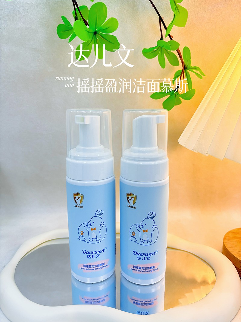 達(dá)兒文搖搖盈潤(rùn)潔面慕斯,潔面新體驗(yàn),敏感肌友好。綿密泡沫,去污滋養(yǎng),兒童專用,無(wú)淚配方。