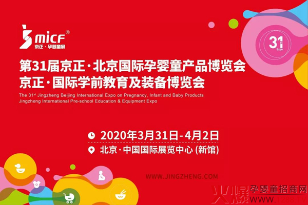 第31屆京正·北京國(guó)際孕嬰童產(chǎn)品博覽會(huì)、京正·國(guó)際學(xué)前教育及裝備博覽會(huì)將于2020年3月31日至4月2日在北京中國(guó)國(guó)際展覽中心(新館)召開(kāi)。